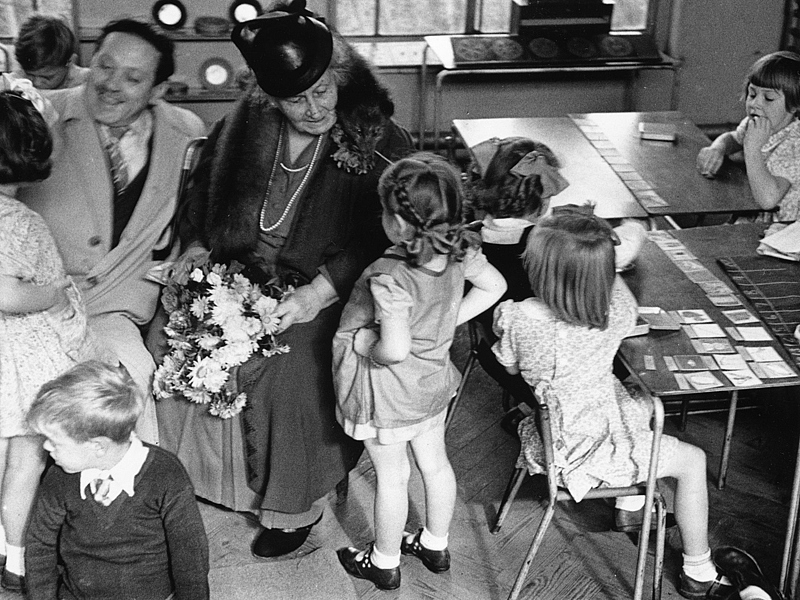 Maria Montessori (Chiaravalle, 1870 – Noordwjek, 1952) era una pedagoga italiana che rinnovò l’insegnamento sviluppando un particolare metodo, conosciuto come metodo Montessori, che si applicò inizialmente nelle case dei bambini italiane e più tardi in tutto il mondo.